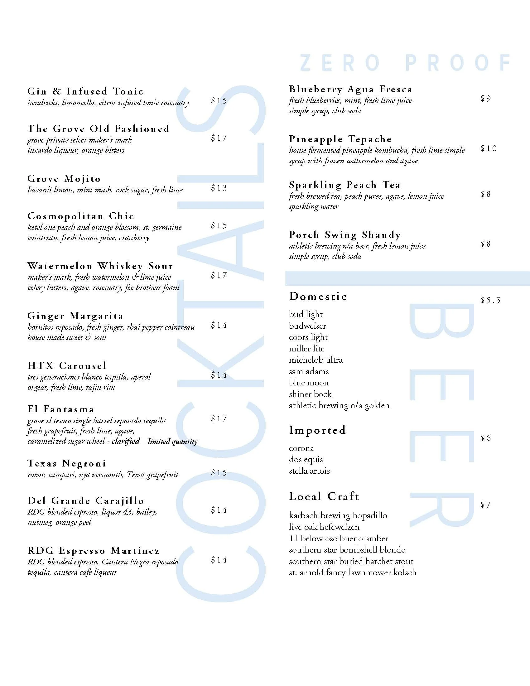 BAR & LUNCH MENU